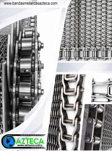 La malla metálica conducidas por cadena se recomiendan cuando se necesita movimiento positivo y sincronizado de la banda (transferencia, arrastre o empuje), especialmente en aplicaciones con cargas pesadas, largas distancias, o ambientes donde hay líquidos de enfriamiento, aceites, humedad o condiciones resbalosas, donde una banda por fricción no sería confiable.